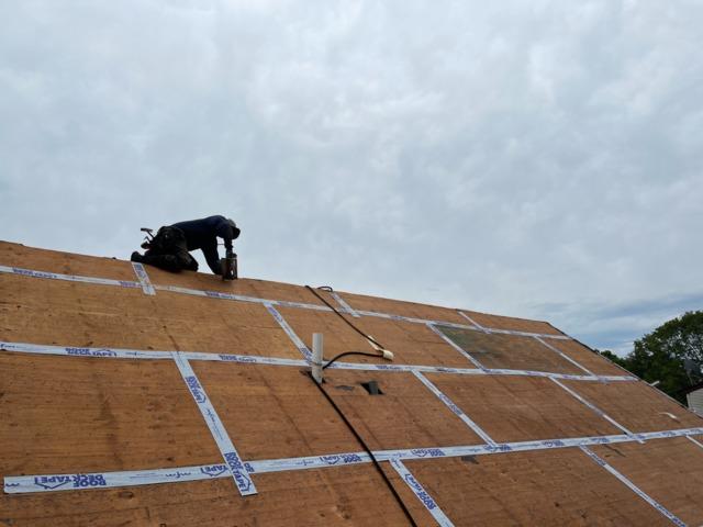 Klaus Roofing Systems by Triple H did a full roof replacement on a home in Medford, NY. We use 4-inch tape for all seams. Taping the seams prevents water, air, and moisture from entering the home.